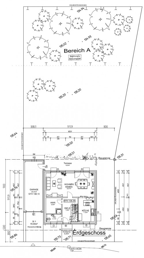 Und so soll das dann mal mit Garage, Haus, Auffahrt, Terrasse und Garten aussehen: